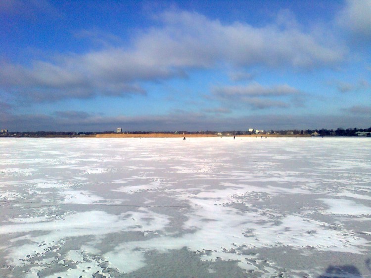 С окунем дело обстояло всё же повеселей, но, конечно, клёв был явно не как на Чёрных камнях. Так что когда после полудня Михаил сдался, то нас с Димоном в Узваре тоже ничего особо сильно не задерживало. Сдали немногочисленную плотву Мише на засушку и по пути попросили Мишу выбросить нас у яхтклуба, где и провели остаток дня в моционе до аквапарка и обратно. К аквапарку сходили явно зря, но я хоть посмотрел новые для себя места. Уловы где-то по 2,5 кг. Погода - манго: несильный западный ветерок, что-то около нуля в сторону плюса. Течение шарахало весь день то вверх, то вниз, но бОльшую часть времени просто стояло. Полнедели стояла суровая оттепель с дождями, позавчера за несколько часов зачем-то выпало шесть сантиметров снега, который вчера уже весь растаял. Да ещё воды западными ветрами нагнало - под берегом местами большие проблемы с заходом на лёд. В общем, ситуация со льдом стремительно ухудшается. Завтра, наверное, поедем опять в Узвару, т.к. практически везде клюёт как в глухозимье (точнее, не клюёт ).