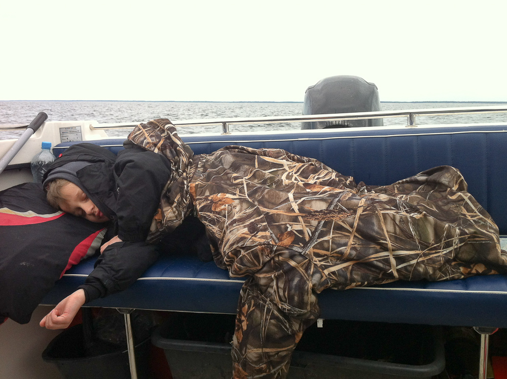А потом пауза и в час по чайной ложке, но размер правильный, около 2 кг, за борт практически ничего не шло. К обеду стало раздувать и мы решили драпать.
