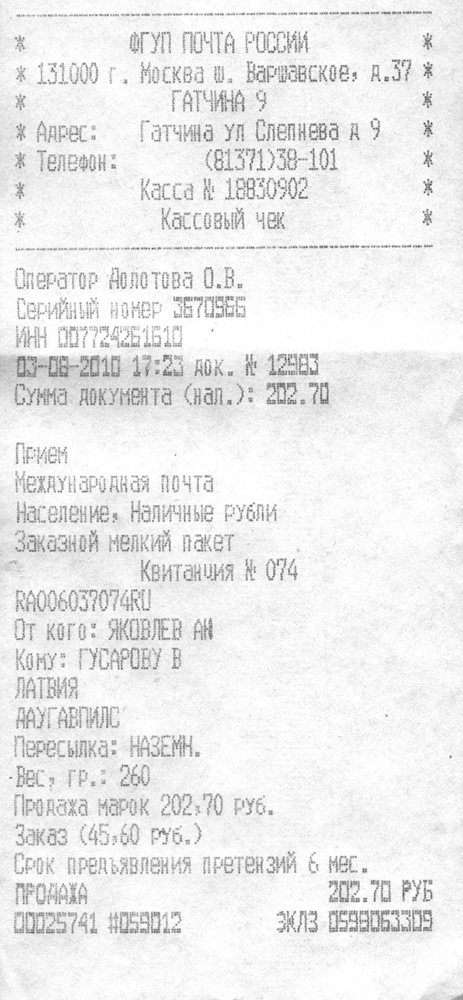 Максим (TATARIN) - отправлено (через Питер) , в пути.