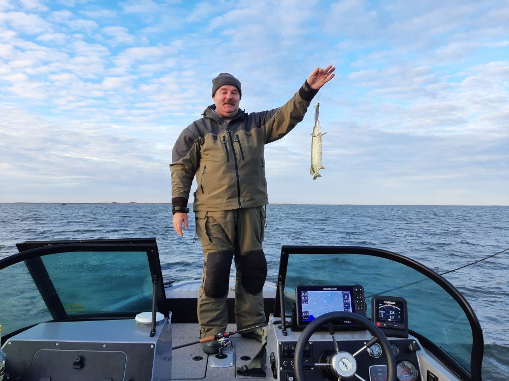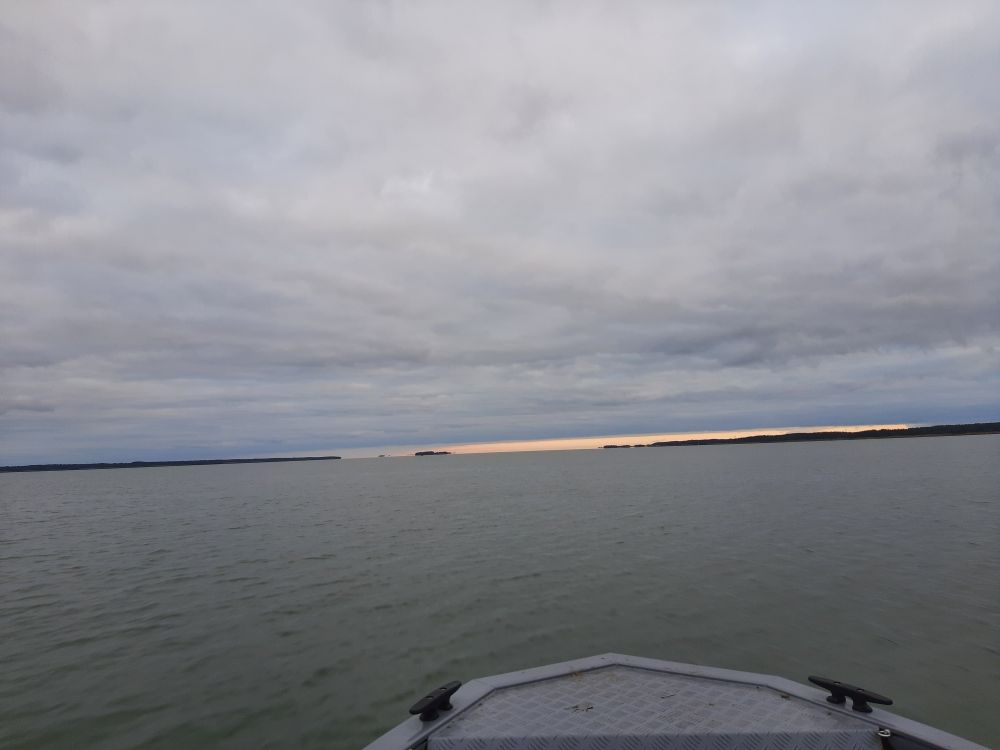 На воде тишина крастота. Вышли на глубину и по газам в даль дальнюю. На точке хот рябь есть какая то, а то штиль да штиль. Щучка молчала. Зато проявился окунь. и довольно бойко клевал. Да и размерчик приятный. Но как то быстро стайка ушла, а куда не известно. Чайки то нету, не отследить