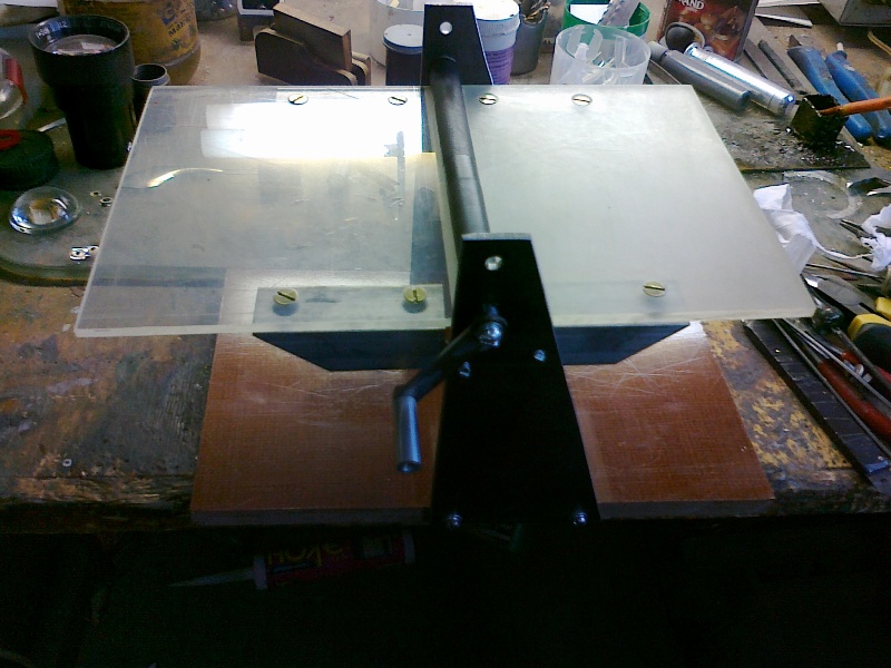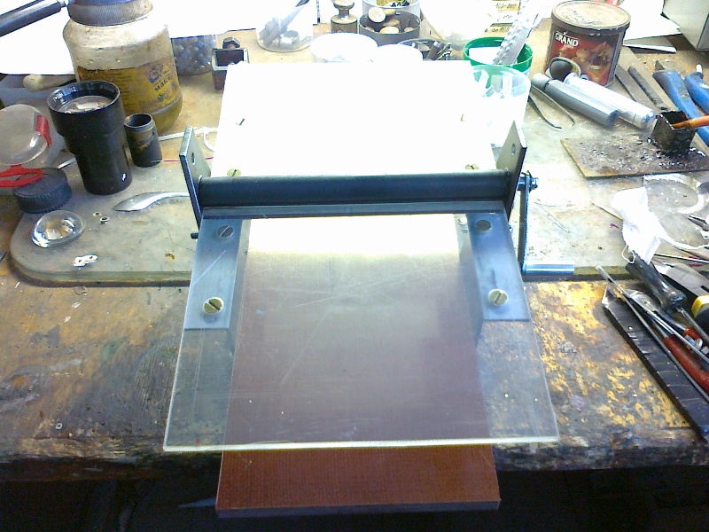 Возможный вариант машинки для прокатки фольги,состоящий из двух валиков от принтера и кучки общедоступных материаллов.