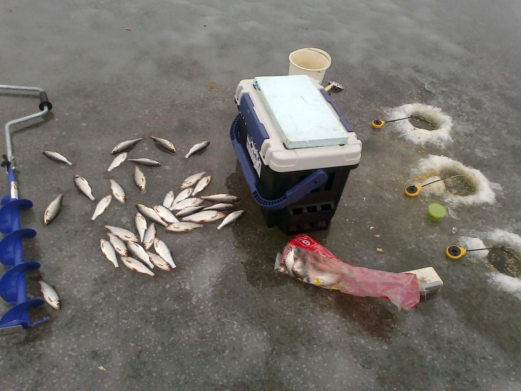 Ход местами тяжёлый, с водичкой под снегом. Лёд чуть толще критичного. По рыбе, у Димаса одна съедобная щучка. Зато пробзделись классно