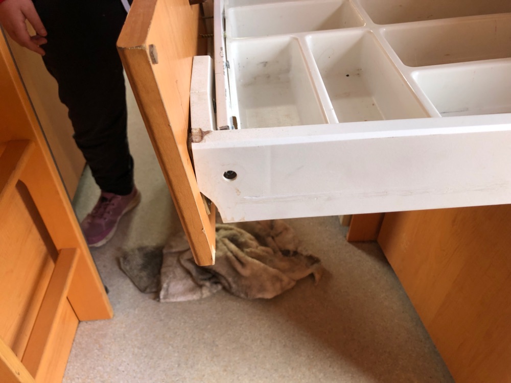 По мебели было пара косяков, обратился к мастеру и за 2 дня всё починили, изготовили новый ящик под столовые приборы и обновили штапики.
