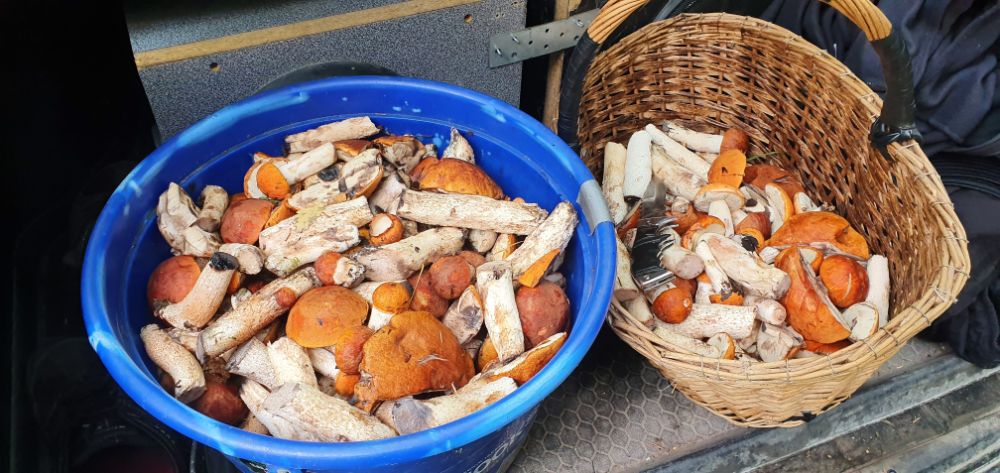 Вырвался в лес вчера, промчался по своим местам за Локса, чутка есть старых белых, всё червивое, немного лисичек , моховиков и совсем молодых колпаков на фотке в ведре. Полетел на вильяндское шоссе, на моём месте два конкурента уже парканулись и гуляют, прогулялся и я, корзина подосиновиков.