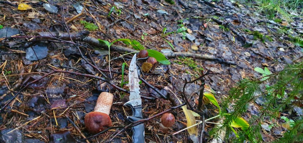 Потом в сторону Вызу, от растройства даже не стал все места проверять. Весь улов на фото. Помчался за подосиновиками и там тоже почти ничего, сложилось впечатление, что добрал что в прошлый раз проглядел... Холодно, рост грибов остановился.