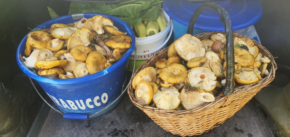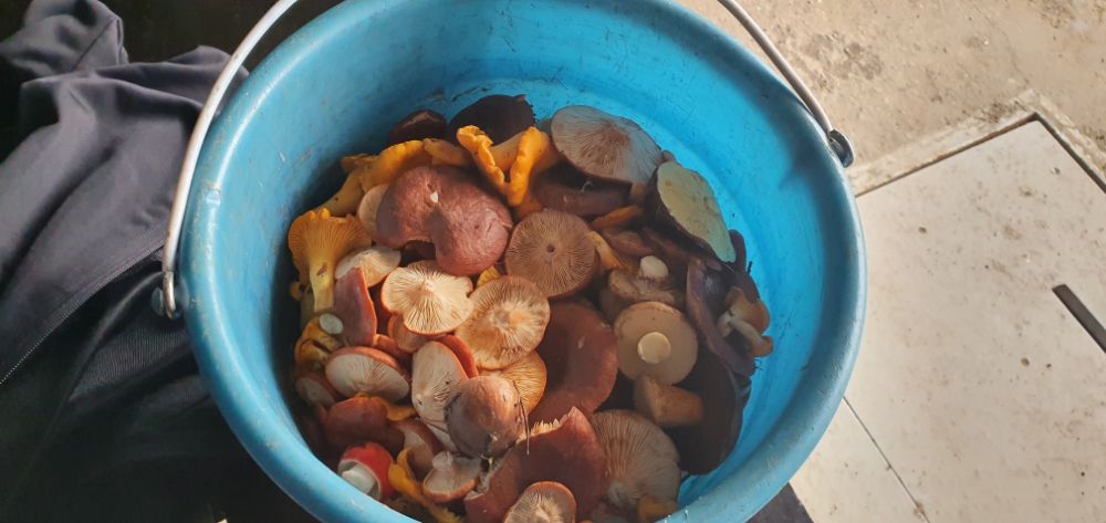 Всё вместе составило литра 3... А на газоне у гаража, за неделю вырасли савинухи, растут сыроежки и стоит 5 шляпок подберёзовиков размером с лесной орех, думаю уже подгнили...