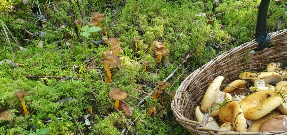 В субботу друган вытащил по грибы, он приехал с работы и жутко хотел в лес по белым погулять, я же больше навострился на горькушки, в итоге промчались в Витна, на Белую речку и под Вызу, литров 15 на двоих всякого разного гриба набрали, основная масса горькушки и лисички, которые вдарились в рост.