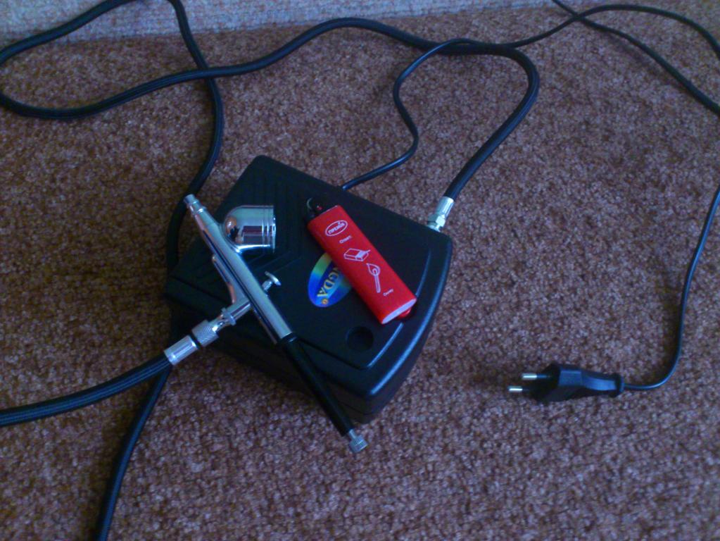 В последний раз, когда красил, вертел в руках свой мини-компрессор и обратил внимание, что на корпусе нет ни единого отверстия для забора воздуха. Единственная мысль, которая пришла в голову, это забор воздуха, через щели в корпусе, которых по факту нету.
