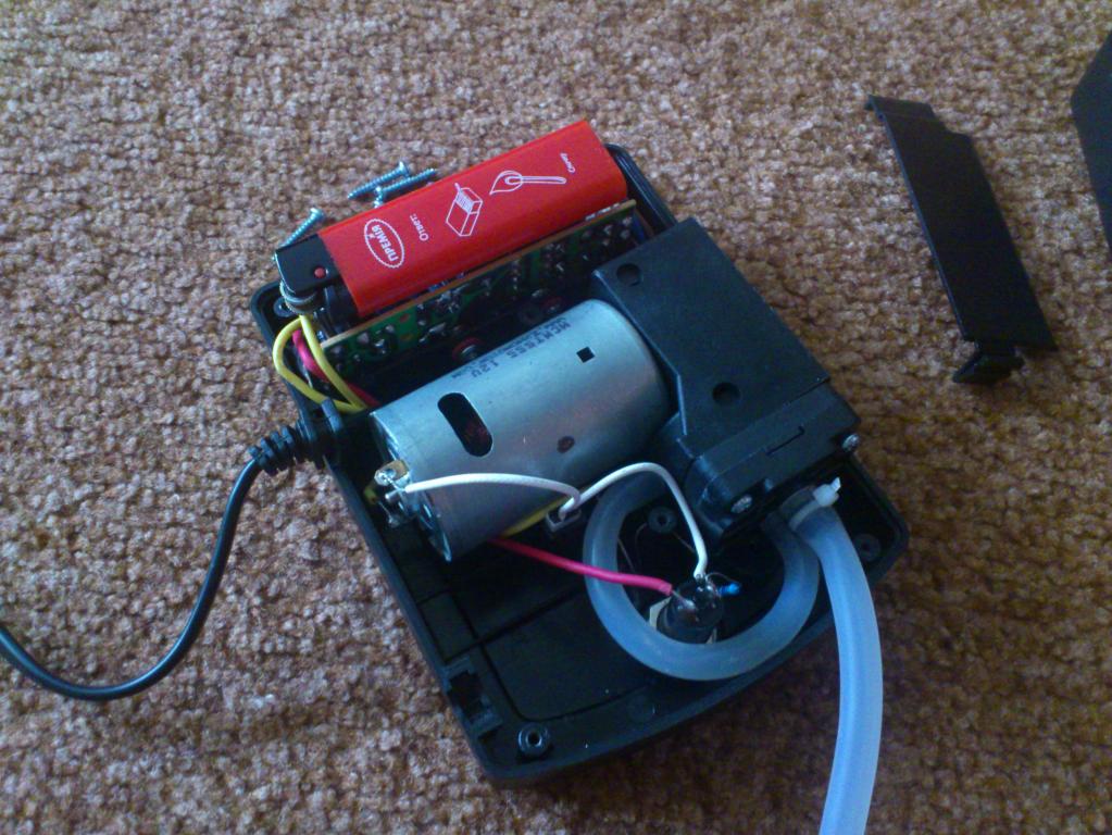 Вот сегодня наконец дошли руки до него, чтобы посмотреть что там внутри и немного доработать (уплотнил движок оконным уплотнителем от вибрации и заменил шланг подачи воздуха, чтобы на изгибе не передавливался). Так-же до разбора думал сделать пару отверстий, для облегчения забора воздуха компрессором. Разобрал и удивился еще больше