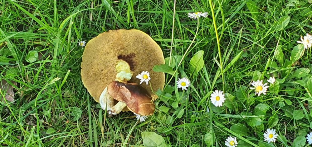 Это парни (по Витиному описанию сужу), Дубовик, съедобный гриб, в народе синяком кличут, синеет на срезе, на Паункюла его много попадается, в лесу редко встречается в большом количестве, обычно за ним только молодым нож достаю, по причине червивости.