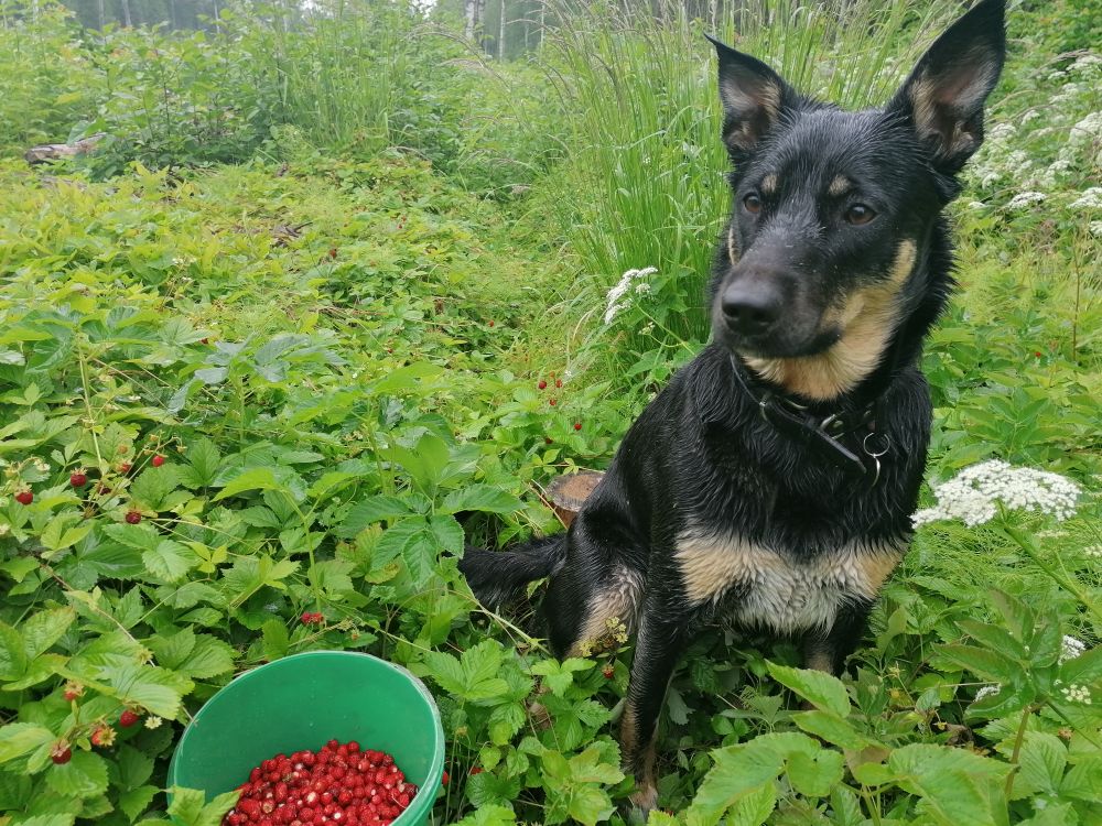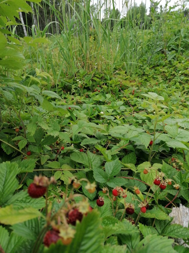 Сегодня поломали голову чем заняться, а потом взяли ведёрко и в лес. Чё найдём то найдём, а не найдём и ладно.Повстречали землянику, а давай попробуем пособираем, затягивает, с детских лет так ягоды не собирал. Еслиб дождь не выгнал, ещё бы собирали, уходить не хотелось.