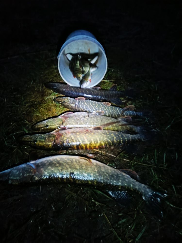 Ну наконец, напарник приехал щуку погонять. Отговорил брать катер, возможно зря, рыбу пришлось активно искать и воды нагнало много. Договорились до 1,5 отпускать и упор в окуня. 3 только поймали и на обычных местах его не было, возможно по камышам попрятался, х.з., отпустили штук 9 щук, взяли 8, самая большая 4,5 кг.