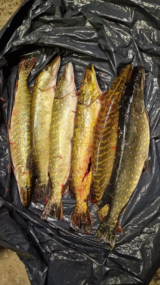 Ну наконец, напарник приехал щуку погонять. Отговорил брать катер, возможно зря, рыбу пришлось активно искать и воды нагнало много. Договорились до 1,5 отпускать и упор в окуня. 3 только поймали и на обычных местах его не было, возможно по камышам попрятался, х.з., отпустили штук 9 щук, взяли 8, самая большая 4,5 кг.