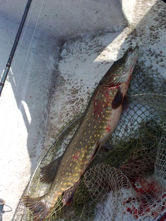 В прошлую пятницу, вечерком, удалось все же выехать на пару часиков, в этом сезоне.. Перепробовал с десяток различных воблеров - результат нулевой.. Решил поставить X-rap и через несколько минут - удар. Щучка оказалась закилошной и довольно бойкой, подтащив ее к лодке, несколько раз сматывала фрикцион, приятно с такими бойкими иметь дело.