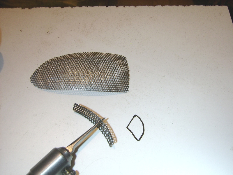 Отверстия пытался делать похожими на чешую двумя способами. Первый -коррекция с помощь бормашинки. Второй -расширение с помощью самодельного конического "шила", сечение которого напоминает контур чешуи (на одной из фоток показал маркером). Как ни странно, второй способ не дал серьёзного выигрыша во времени.