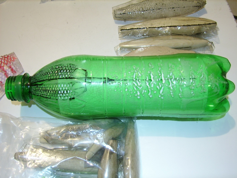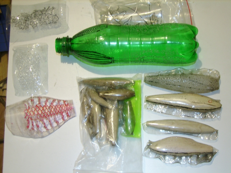 Наверняка, с первого раза нормально не получится, придётся учиться на своих ошибках, вносить в процесс коррективы. В процессе пришлось решать такой вопрос: дырявить ПЭТ до того, как он стал панцирем, или после? Вроде, удобнее сначала наделать отверстий, особенно, если они сравнительно небольшие. При этом, правда, нереально добиться, чтобы рисунок оказался на воблере строго в нужном месте.