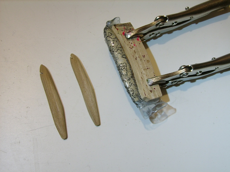 Раньше зажимал зубрами напрямую, но потом подкорректировал технологию, стал использовать дополнительно деревянные прокладки (бук).