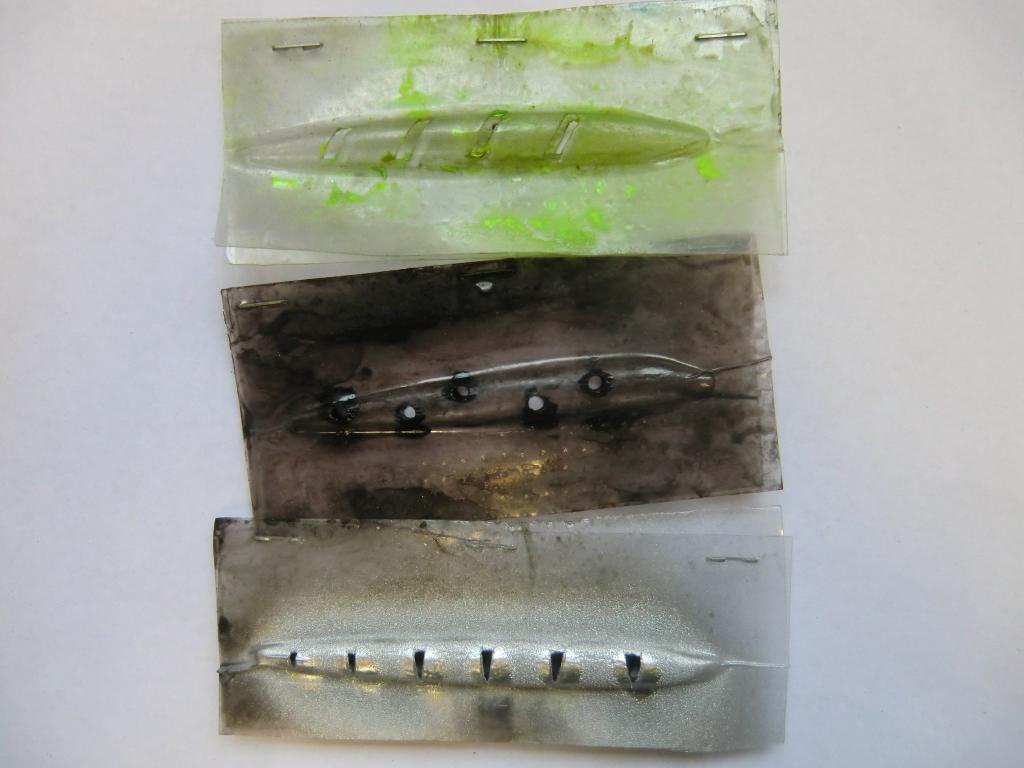 Дима привет ! В том каталоге что есть в ссылке разные виды и качества плёнки та что у меня жестковатая .Формировать -термо скажу честно не пробовал и нет нужды.Из алебастра сделаны формы Воблер ложится погруженный до половинки ,сверху трафарет и покраска меня это устраивает На поток не ставлю изготовление,чисто для себя. А так-бы может еще шевелил извилинами для облегчения, но и так не трудно. Всем удачи и здоровья!!!vdv писал(а):С нитрой без проблем. Форму вообще не держит, она очень мягкая.