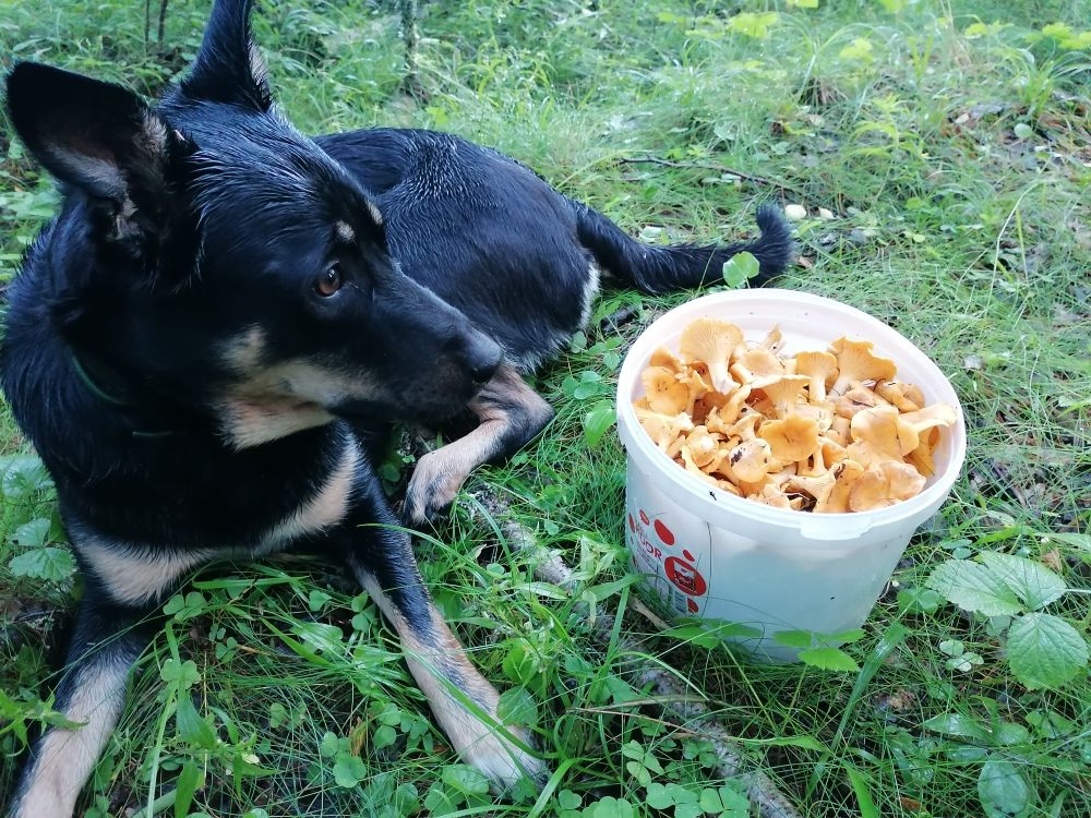 Тоже не усидел сегодня дома. Хуже нет ждать и догонять. Думал на следующей неделе сезон грибной открывать, как гипс сниму. Но пятая неделя пошла, невмоготу. Можно это бы время было рыбалке посвятить, но надо же было умудриться так звездонуться, что на левой ноге колено сломать, а на правом плече ключитсу вывихнуть. Поэтому целый месяц, что и мог, так это с подругой прогуляться, чуть за деревню и обратно. А сегодня в лесу отрывались, она набесилась, пришла и рухнула дома, да и я сильно от неё не отставал. Позабыв про всё, что болит и мешает, скакал через валежники и буреломы. Во что азарт животворящий делает! Поехали в обед уже, боялся заедят гады всякие, на удивление, ни кто особо не докучал. Начал чуть лисичек, потом потихоньку всё вперемешку, сыроежки, подберёзовики, подосиновики, боровики. Но, грибов не много, и местами, много только переростков встретили, а молоденьких в окурат.