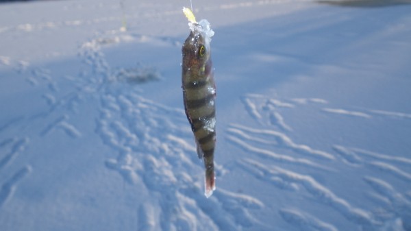 Размер- чуть больше мормышки. Я поймала свою первую зимнюю щучку