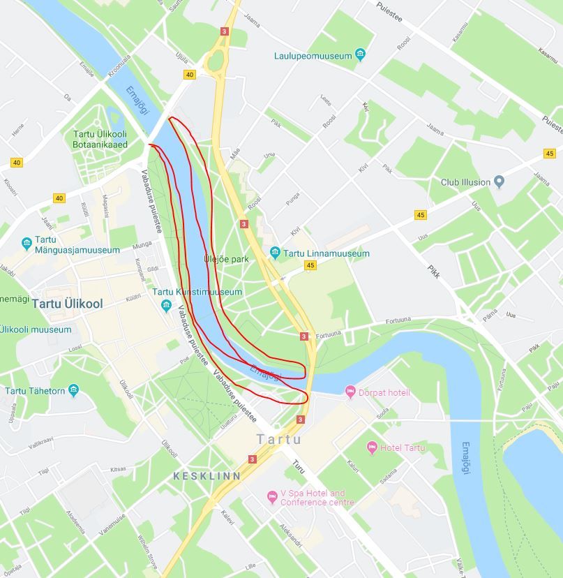 Самый центр Тарту , набережная у мостов , прямо там и рыбачь , ни сапогов ни отпугивателе комаров не надо .