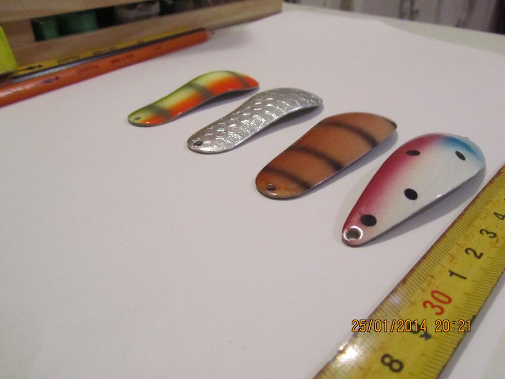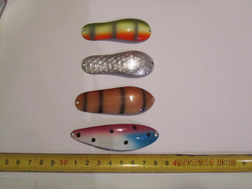 Всем Привет!!! Лет 15 назад, когда Профессоры стоили 400 рублей а китайцев ещё не было, сделал штамп. Вырубал из нерж. 1,0-1,2-1,5 мм. и из цвет/мет до 3,0 мм. Нержавейку сваривал на контактной сварке "бутербродом" для разной развесовки. Аэра не было, красил тампонами+балонами. Финиш НЦ лак. Рыбов ловили на ура. Потом появились китайцы, ценник упал до 80 рублей и надобность в штампе отпала.