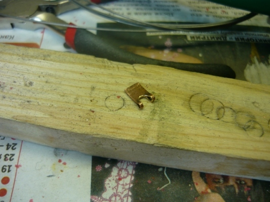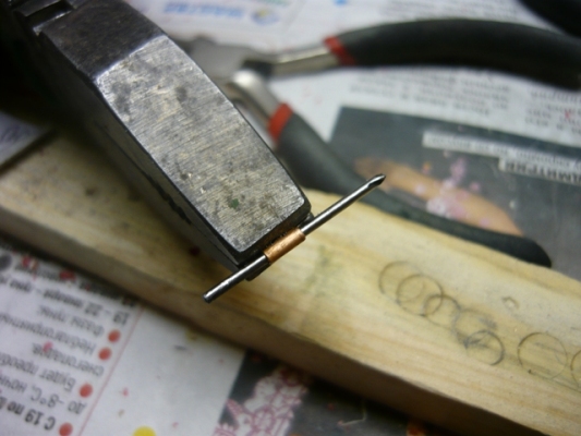 Вынимаем проволоку. Надфилем (бормашина или дремел очень могут помочь на этом этапе) выпиливаем внутренний радиус будущего хомутика, периодически примеряя его на проволоку.