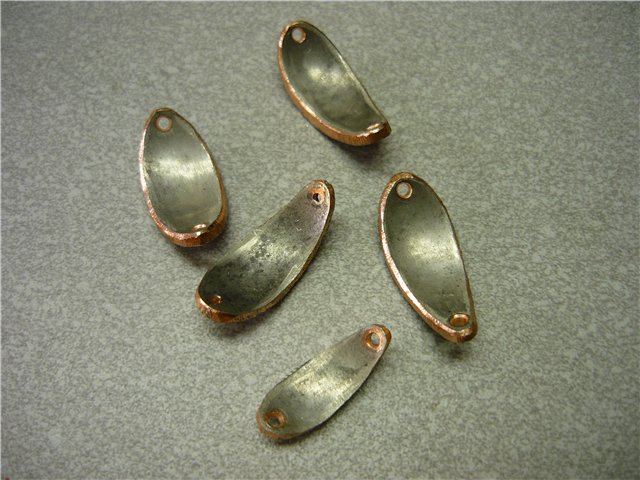 Если толщина блесны 0.5 - 1 мм., то края обрабатываем наждачкой, намотанной на брусок и полируем тряпочкой, смазанной пастой ГОИ. Если толщина 1.5 - 2.5 мм., можно края закруглить. С наружной поверхности блесны напильником сводим толщину металла к краям практически на нет. Затем зачищаем наждачкой и при желании полируем. Мне больше нравятся тёмные окислившиеся блёсны, но иногда нужны и полированные. Есть у меня пластинки меди с серебристо матовым покрытием, иногда оставляю его с двух сторон, иногда только с одной, а вторую сошлифовываю. Такая комбинация бывает очень даже рабочей. (https://picasaweb.google.com/1008308230 ... k5xxordamw ) В последнее время мне понравилось покрывать блёсенки парчой, как на воблерах Лешека Дылевского (LD).
