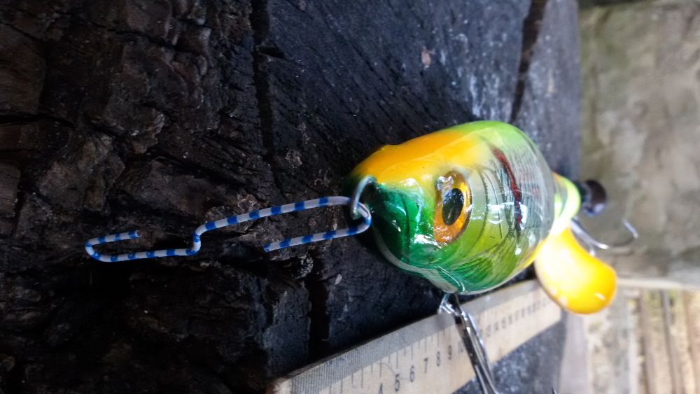 10cм, один сильно плавающий для заросших мелководий.Второй суспендер. Оба с погремушкой.