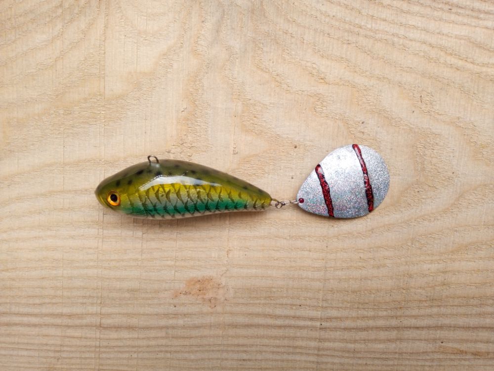 11см, медленно тонущий. Канал с двумя свинцовыми шариками для стабилизации.
