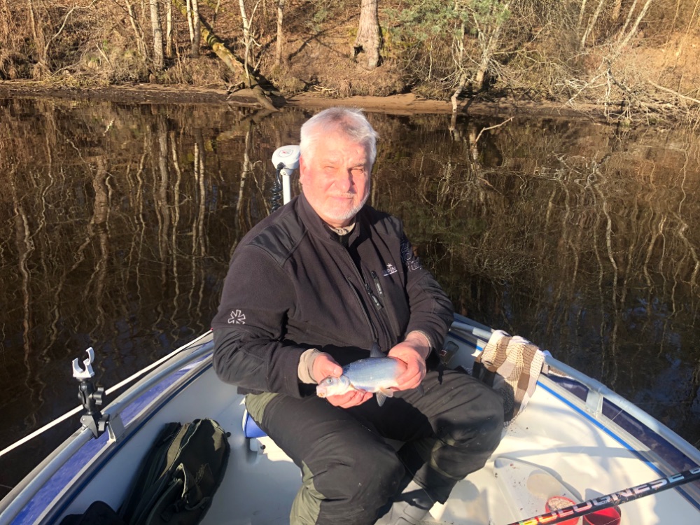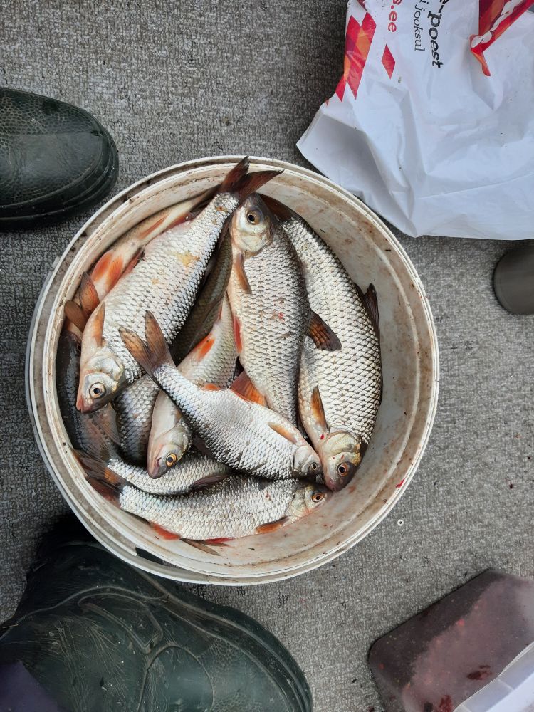 Пока ехал, начали закрадываться мысли, а правильно ли я поступил.? Чем дальше, тем горьче. В Марьяма уже чуть обратно не развернулся, такой снегопад, что уже кашица на дороге есть. Стрёмно ехать то на летней рзине. Ладно, решил дальше. Ближе к Пярну стало по суше. На месте из машины выходил, чуть дверь не вырвало ветром. Ладно, вперёд к воде. был первым. Так что выбор мест былза мной. В одном встал, практически сразу поймал плоточку. Но как то не подуше течение в этом месте. Перешёл в другое, потом ещё. Вернулся, рядом с первой стоянкой уже сосед стоит. Сместился я на вторую точку, там вроде и встать рядом не кому, и течение хорошее. Да вообще приглянулось. Несколько пустых проводок, бросаю два шарика прикормки, и моментально начинаются поклёвки. Активный клёв продолжался примерно час. Рыбка в основном красивая. Потом подзатихло. Потом снова начала. Дальнейшее прикармливание приносило пару тройку рыбок, потом тишина, через какой то время опять включался клёв. Всё таки наплывами она брала. А погода швах, ветер, снег, иногда дождь. Не стал долго себя испытывать. В 11.30 закончил.