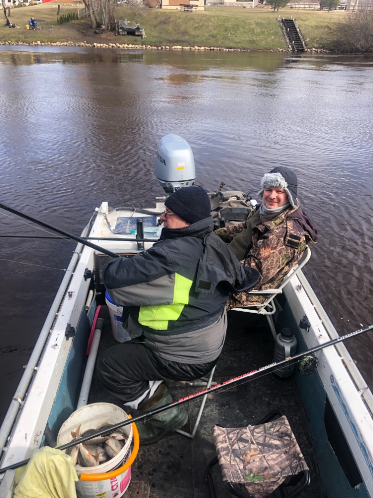 Давно зудит, с самого ледохода на р.Пярну, каждые выходные еду туда к своим, а рыбалки все нет - маюсь из угла в угол....Вот очередные выхи и в начале недели даже погоду рисовали более менее, но чем ближе те самые заветные выходные, тем хуже прогноз. В пятницу вечером, переезжая мост, стало ясно - в субботу рыбалки не будет. Уровень воды дикий, ветер и течение сильные, ну и вдобавок обещали снег и дождь. Суббота пролетела в делах семейных, а вот на воскресенье договорились с батей и корешем, что пойдем искать рыбу. На воде были в 9 утра, пару кругов почета по р.Рейу чтобы поглядеть в эхолот, точка найдена, прикормка замешана и праздник у нас начался сразу. При подборе глубины, я на голый крючок сразу забодал две мамки поросячьего размера - в ведро 25кг на дно поперек не помещались. Раздача была почти до двух часов, пока не вылезло солнце и течение не сбавило силу. Чуть еще поупирались, но т.к надо было ехать домой, решили в 15:00 рыбалку закончить. Лодок было не очень много, по берегам сидели фидеристы, место мог себе найти каждый (на следующих выхах явно будет аншлаг). Оглядываясь по сторонам, не было видно ярой активности среди других рыболовов - ловили все, но так же успешно как мы или нет, я не знаю. Мы с батей наковыряли полтора 25кг ведра, кореш набрал 2/3 от 20кг ведра, размер радовал, сезон открыт, спасибо реке!