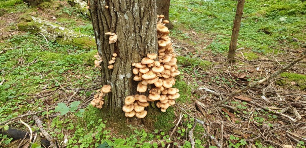 да в этом году попилили знатно, на обновлённых сателитных снимках видно как за последних 2-3 года орудовали, приехал на одно место, деревья стоят а лес проредили, на другом месте тоже самое, грибы в таком лесу стали расти другие, грибница нарушена. Пока искал новые места набрёл на опят ещё не переросших.