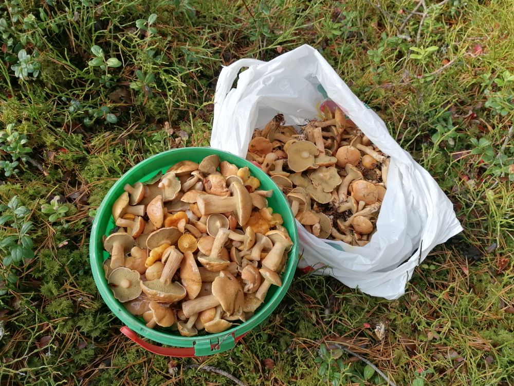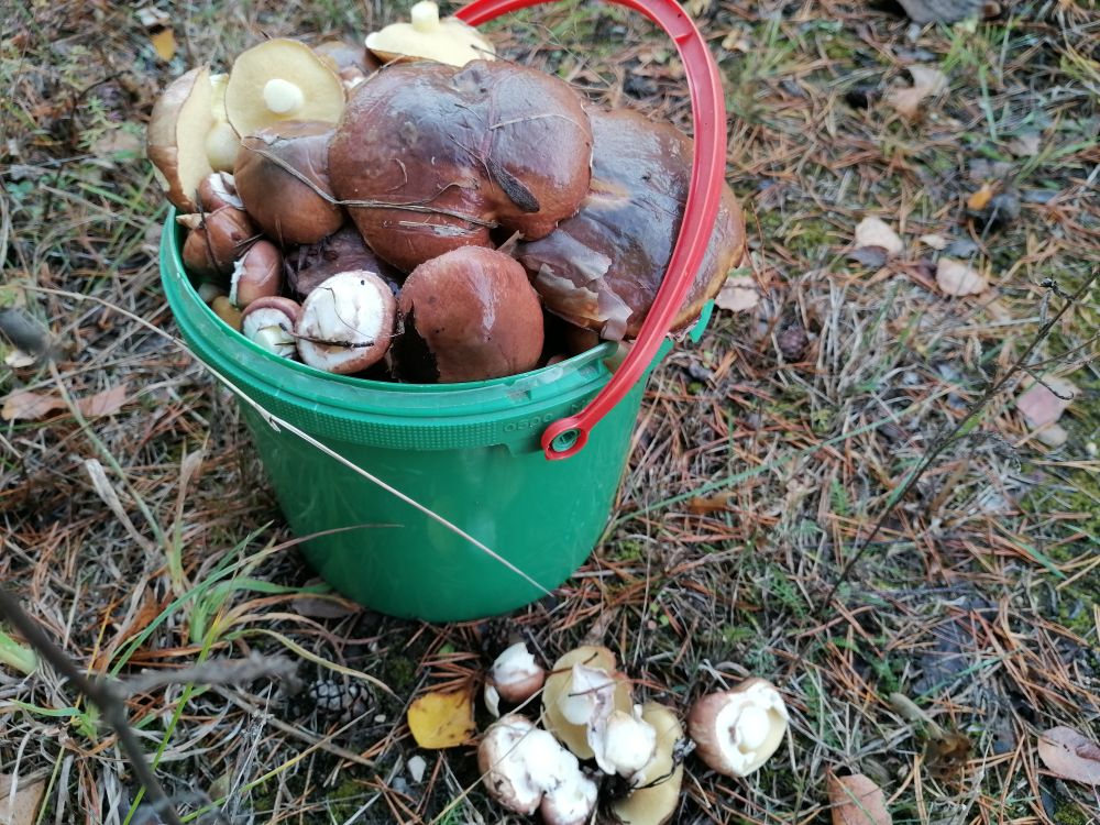 Чуть было не остались без вкуснейших грибов. Прошлые выходные отдуши набродились по лесу, думая что последний раз сезона. Однако погода выправилась и в воскресенье нас опять занесло на побродить. Практически отошли и те грибы которых и не было. Собрав малёхо маслят, наткнулись на белого, потом ещё на одного. Обнадёживающе, но потом долго вообще ничего, а вот под завершение натыкаемся на небольшой квадрат, который прям усеян грибами, названия не знаю, но очень вкусные.