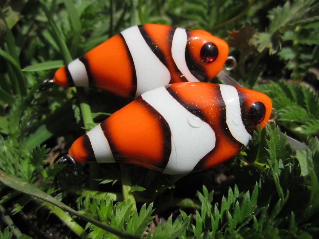 Плавающие , длина 65 мм, вес коротко-лопастных 10 гр, длинно-лопастных 12 гр. , шумовые, каркас - 1 мм, пропитка и грунт - пропионат , водный акрил Декола, лаки - CAB и LV-1. Протестировал на "живой" воде - игра устойчивая, средне-частотная , ближе к широко-амплитудной .