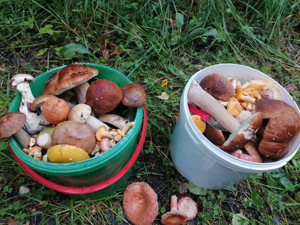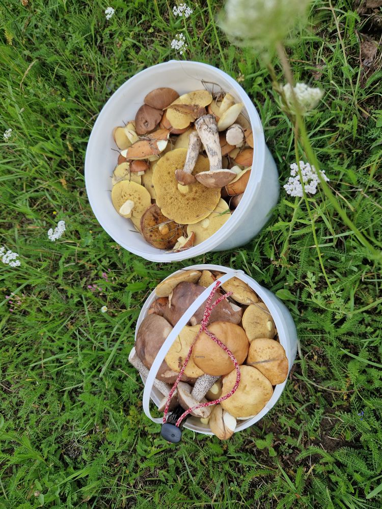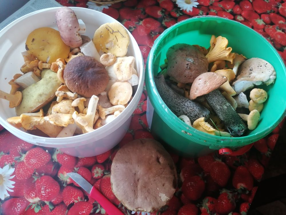 В пятницу на двоих, пакет полный еще в машине, в основном подосиновики, в прилове чутка белых и моховиков, а так же колпаки с сыроежками.