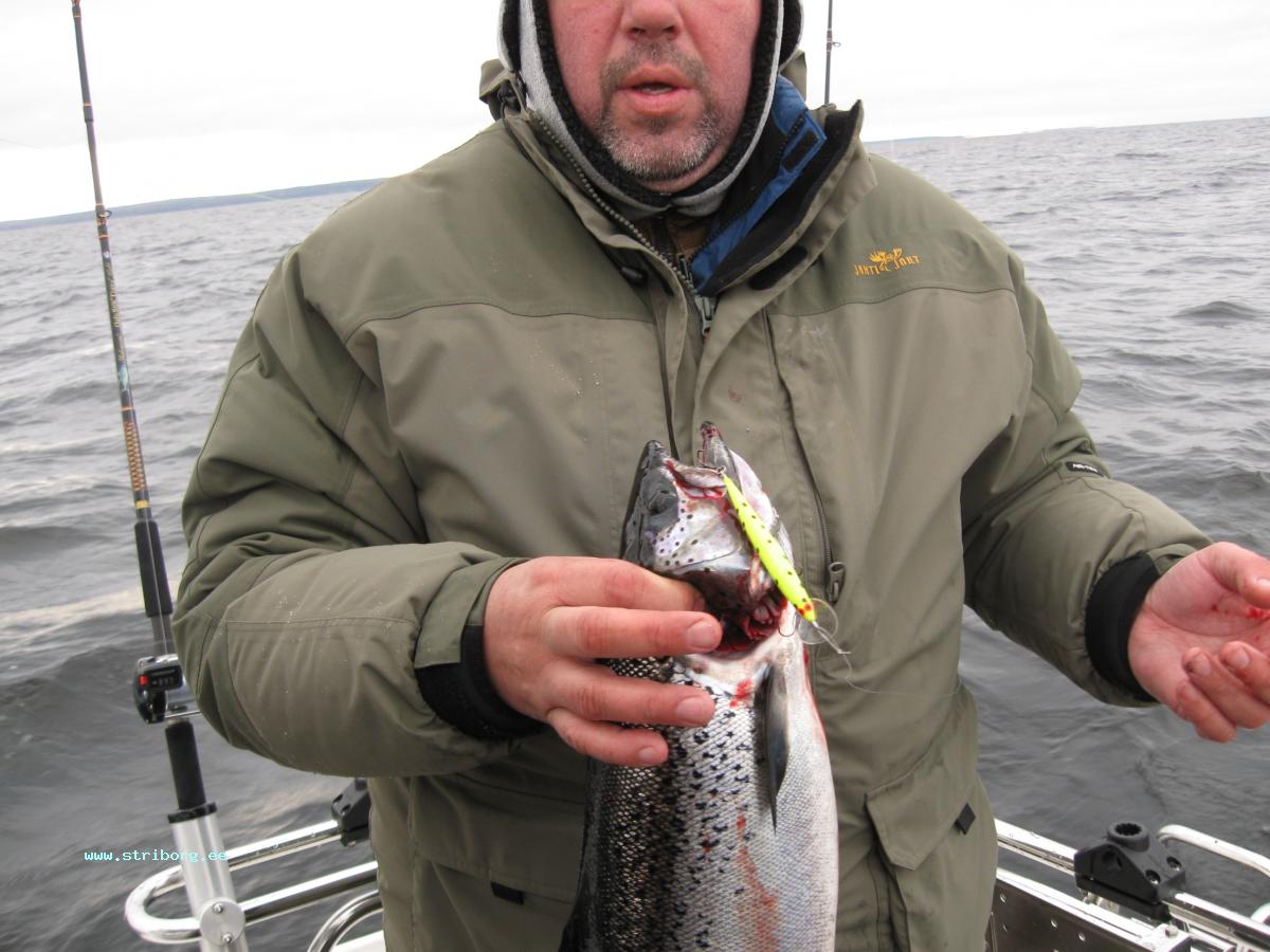 Все выше описанные поклёвки состоялись на одного и того-же шада-7 см. с подрезанной на 50% лопатой из фольгированного стеклотекстолита и мелко трясущейся игрой. На "онежский корм"-11 см. удалось уговорить только двух шнуров по 400-500 гр.(отпущены).