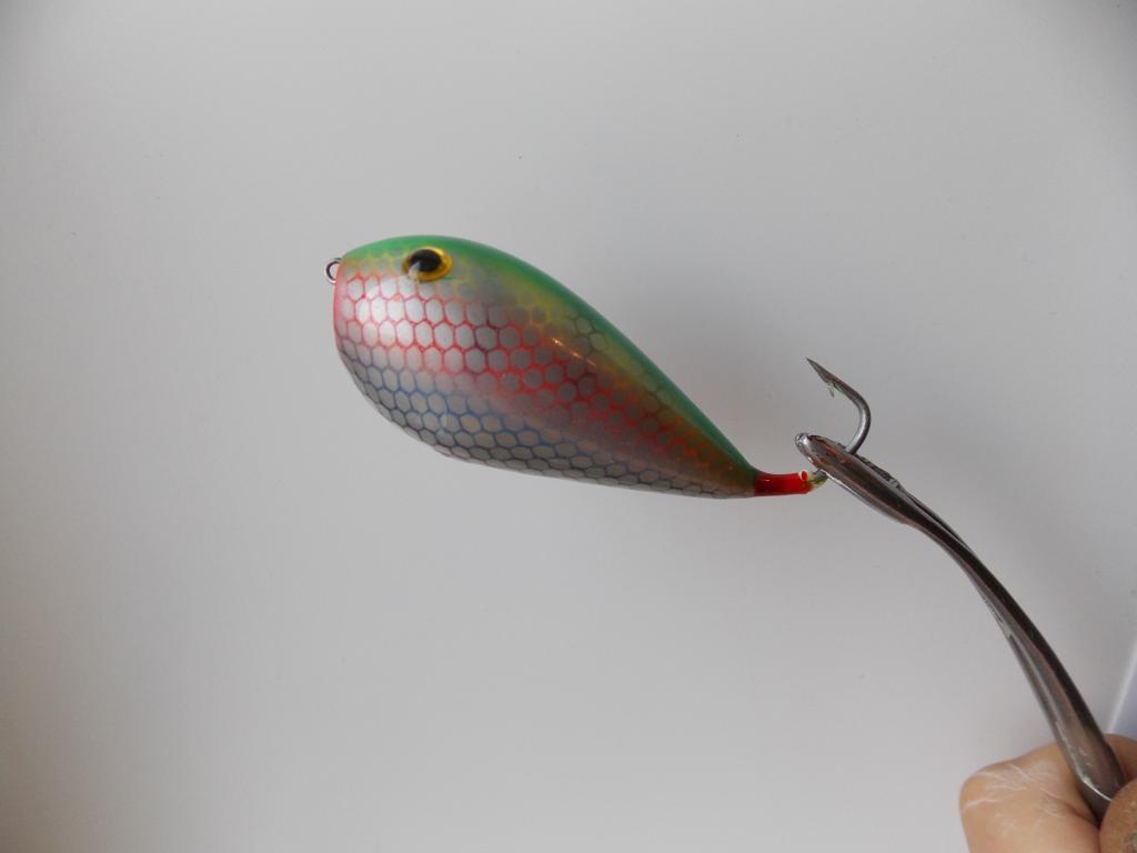 вот как-то так и предполагал, что все будет. Тут сразу всплывает еще один вопрос: скорость возврата крючка в исходное положение после поворота приманки на рывке (зависит от легкости материала и огрузки). Подозреваю, что абаши (в отличие от бальсы) не даст достаточной скорости (приманка идет через траву, колеблется, и в силу недостаточной скорости цепляет крючком больше травы), зато даст инерцию, то есть более "мягкую" и плавную елочку при проводке ??? подскажите, кто в курсеvedmak писал(а): Во время (...) проводки задняя часть выйдет из воды ,тело вытянется ,соответственно проводка будет уже параллельной т.е. по ватерлинии , а в момент остановки, если зад немного просядет оно даже лучше, т.к. жало крюка примет более вертикальное положение, что существенно для засечки
