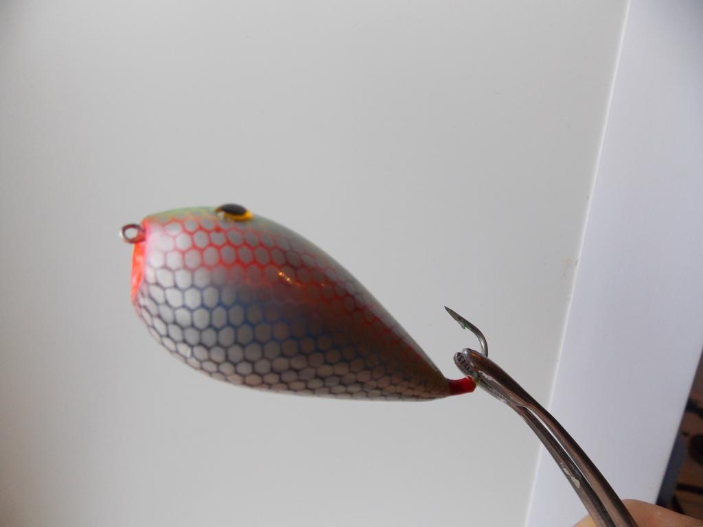 . Да и все знакомые на них помешались.Но ловля на них честно говоря оч. азартна и захватывающи. Вот выкладываю свои работы, снизу специально делал чешуйки чёрными - для контраста на фоне неба:- крупные яйца абашка дл. 8см. вес 20 гр. , мелкие бальса 5.5 см. вес 14 гр. Огрузку для больших и малых отливал разную и в разных местах устанавливал. На больших 6 гр. типа полуолифки приклееной снизу , на малых 4 гр. типа конуса с расширением к носу вставлял на 1/5 тела снизу в спец. высверленное конусное отверстие. Второй вариант понравился больше, не только мне , но и щуке. .