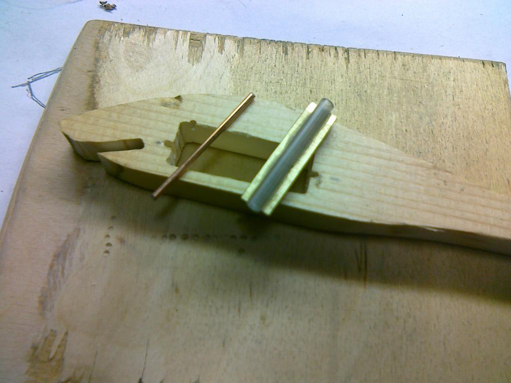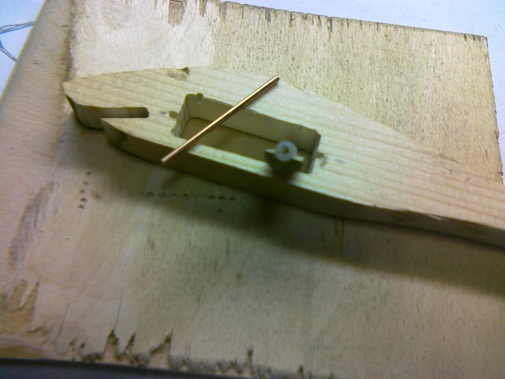 Попробовав, всё взвесив и прикинув, решил, что кренковая игра будет более уместна для применения вибратора. Подсмотрел у Вячеслава принцип эксцентрика и пришпандорил подобный в кренко-шедовое тело дайвера. Целью было сделать активно играющий воблер, с максимально большим грузом маятника (и всё-таки это скорее вращающаяся деталь, вызывающая вибрацию тела), без доп. огрузки и не шумящий (очень мне это важно). Эксцентрик изготовлен из латунного прутка, разрезанного напополам. Втулка из стержня от шариковой ручки, приклеена к эксценрику. Ось из сварочной проволоки.