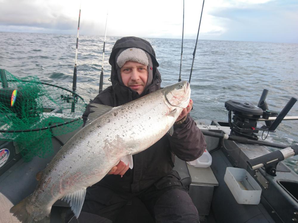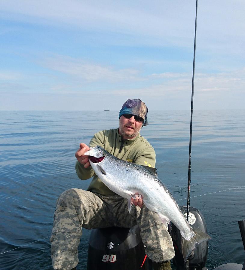 Якорь не бросали, ветерок был довольно свежим и нас иногда относило от берущего долбоклюя, включали троллинг и довольно быстро находили стайку опять. Ну и настроение конечно от такой рыбалки было на пять баллов!