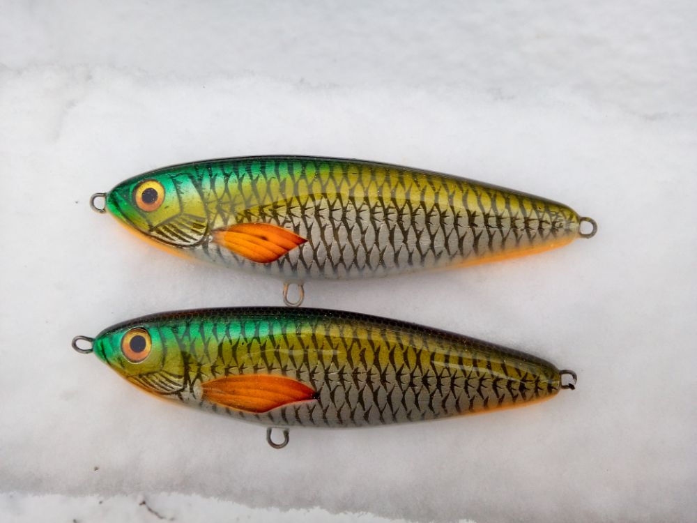 Идея та же, прототим американский. верхний 14см, средние 12см, воблера суспендер для твича, рабочий горизонт около 1.5-2м.