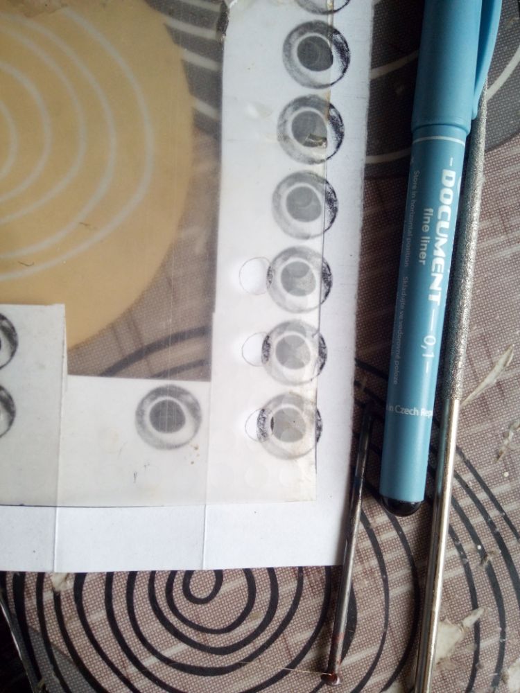 Распечатка глаз на бумаге, кому как нравится. Коректором наношу белый слой, чтобы не промокало лаком и созадать белую подложку. По краю энвиротекс, глиттер, на грячий чайник для быстрого высыхания. Зона, за которую держал зажимом потом обработана красным голографическим глиттером. Поверх нижний край покрасил тонким слоем прозрачнго оранжевого. Тонкий слой лака.