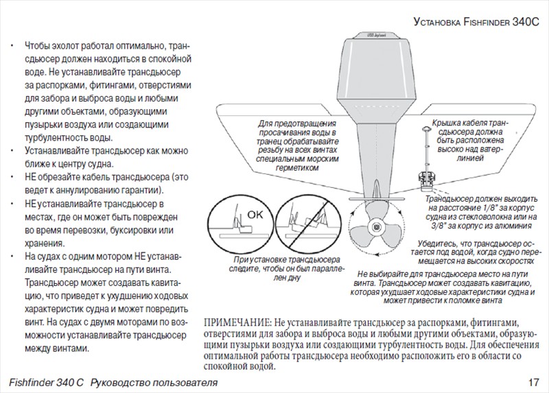 По инструкции датчик на кронштэйне должен крепится не по центральнойк оси транца, о немного сбоку, я вкручиваю где-то 10-15цм от оси транца и он никому не мешает.andrej 555 писал(а):арнис спaсибо засовет ,но уменя буш краб 3.6 и я дазе толком инепредумал, где он будет стоять хтоб било удобно да идацик в мотор уперается мозет кто подскажет што можно предуматъ