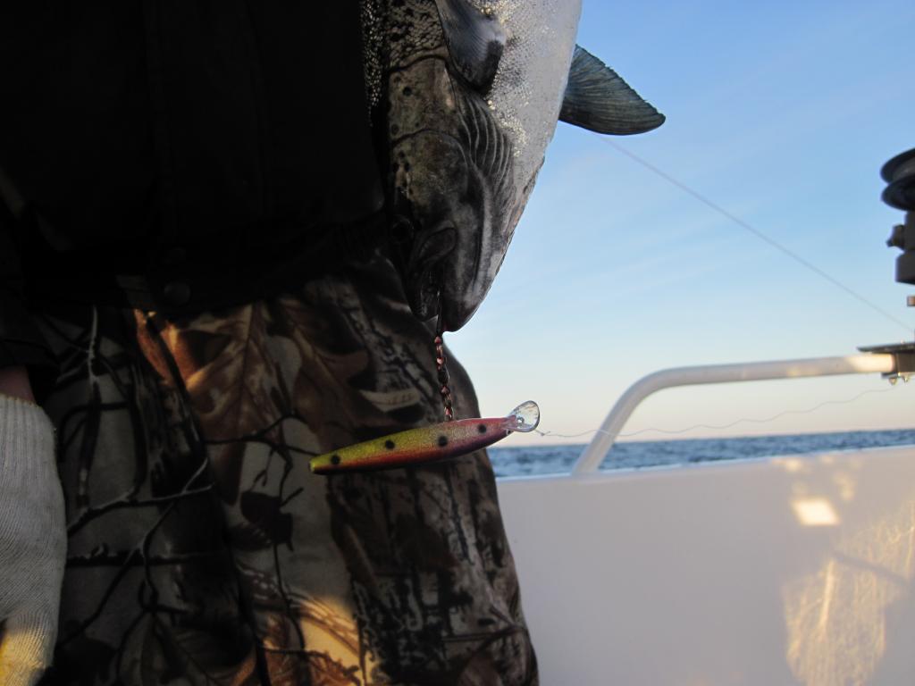 для поднятия настроения, злобный ХыШнИк, грохнул моего последнего "клювачего" воба (ловлю с берега, он взял довольно далеко, дотащил я его до кромки, так он об камни - и головой, и хвостом, и.... ) ни мне пока, ни вобу извините. ну, а потом , на пародию ВОРОБьЯ (5см) поймал рыба с насморком (весь в соплях) 35 см, а кто такой - не знаю - может подскажете?. был пару часов - до обеда. считаю - пойдет!!!