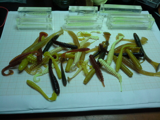 По поводу мягкости вот 4ех сантиметровый твистерок на дроп-шоте. Первая моя работа.) Форму для него делал из строительного силикона. Не очень эстетично, но ловит.