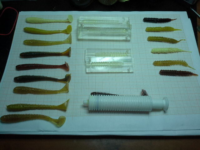 По поводу мягкости вот 4ех сантиметровый твистерок на дроп-шоте. Первая моя работа.) Форму для него делал из строительного силикона. Не очень эстетично, но ловит.