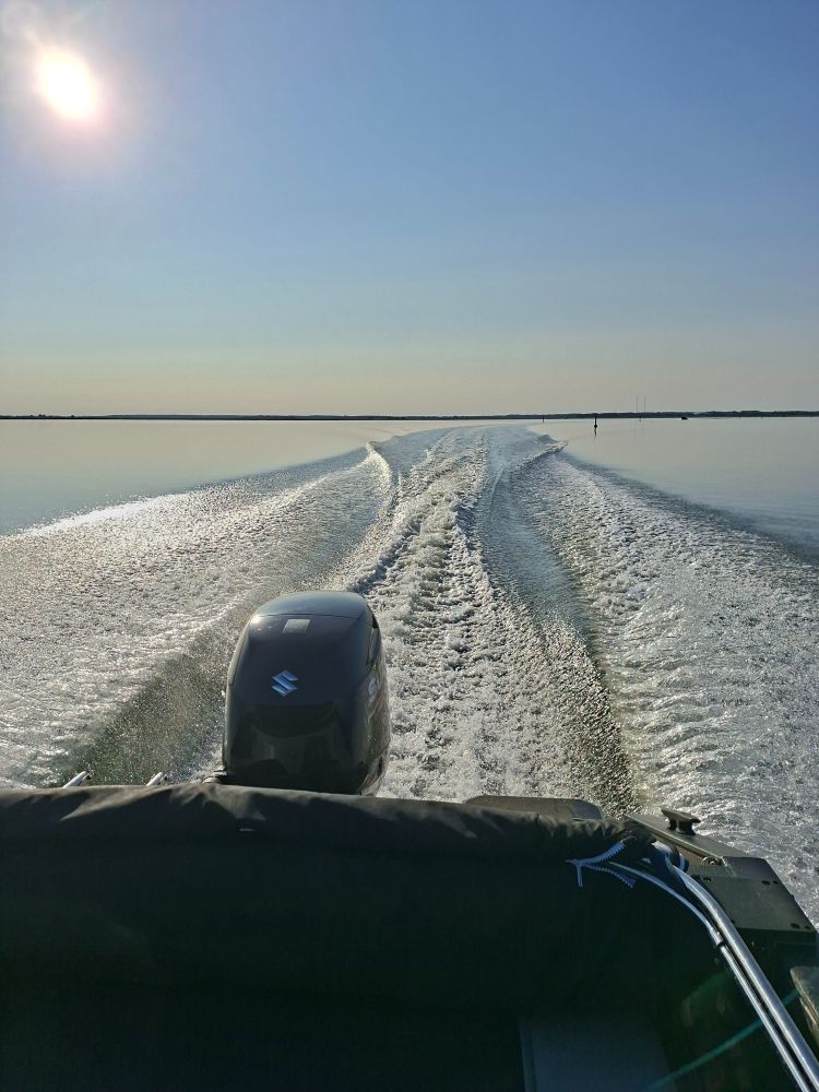С утра штиль полнейший, лодочка бежит аки по маслу. Класс.
