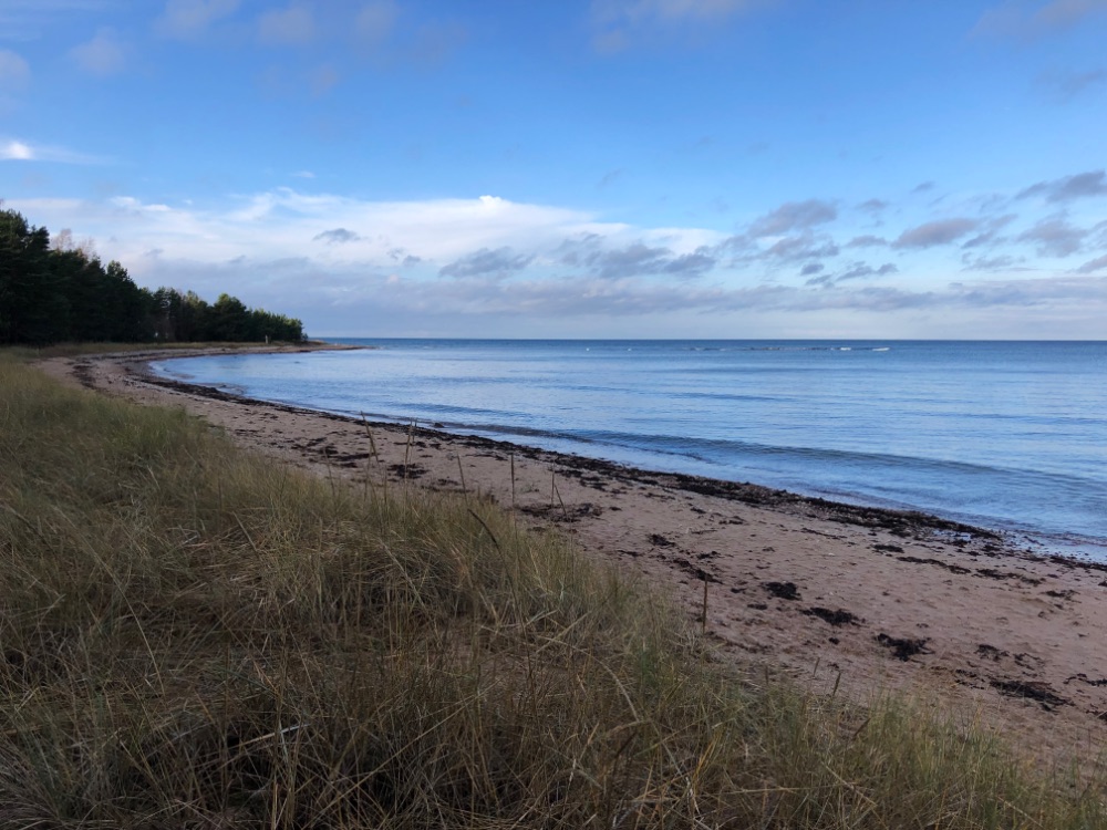 Обратный паром был взят на 8 вечера воскресенья (из-за отсутствия свободных мест на ранних рейсах). Погода радовала - солнце и сильный ветер прямо в лоб. Была надежда что камбала подошла. Но придя на берег мы сразу обнаружили много свежей травы, которую выкидывало прибойной волной - плохой знак :( Закинулись, но ждать долго не пришлось - снасть моментально забилась травой и тиной :( Сделав пару перезабросов стало очевидно, что рыбы нам тут не видать. Быстрая смена плана и мы уже на противоположном берегу, где светит солнце и на море полный штиль :) Красота! На плаяже Хирмусте не было ни одного рыбака, что конечно настораживало. Начали с малой парковки - в течении двух часов ни поклёвки :( Переехали на основную парковку, прошли несколько лагун - мимо, вообще ни клюёт. Упираться не было смысла, было очевидно что рыбы нет.
