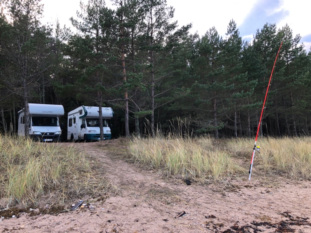 И так, вечером 4 ноября я с товарищем стартанул снова на Хиюмаа. Поехали двумя кемперами, я с сыном и товарищ на своём. Дорога до парома пролетела быстро, учитывая что пол дороги проболтал по телефону с Олегом2 :) Переправились на остров. Пока шли на пароме, определялись со стороной на которой начнём лов. Всё указывало что надо ехать на юг. Так и поступили, поехали на привычный нам пляж Калесте.
